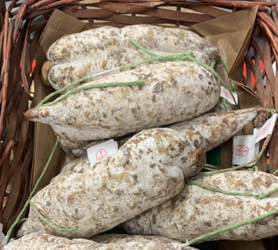 Saucisson bio 70% brebis et 30% porc entre 250et 300g.